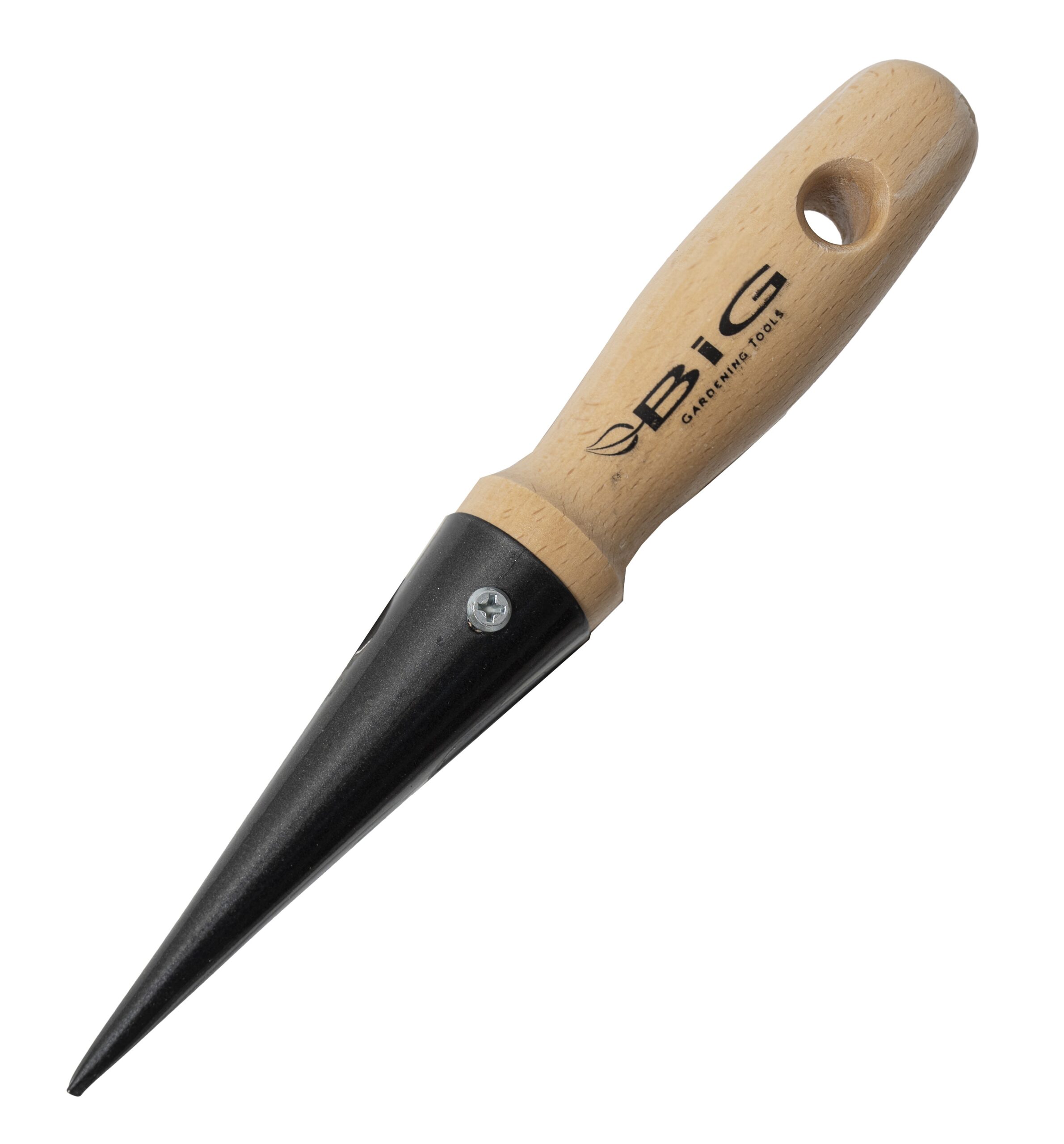 pikownik z drewnianym trzonkiem do wykonywania otworów w glebie. Niezbędny przy rozsadzaniu małych roślin i wysiewie nasion